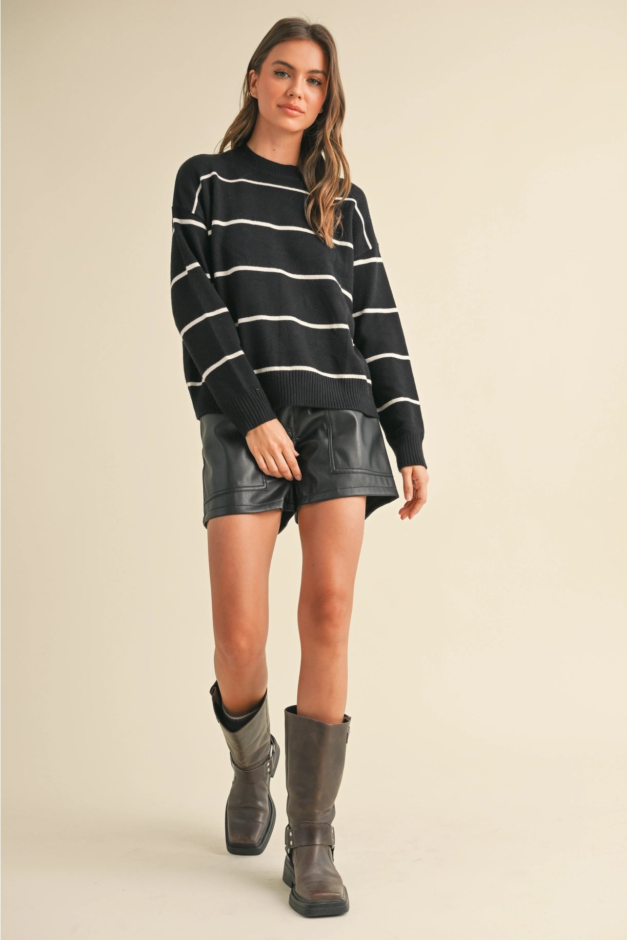The Handmade Striped Pattern Sweater Top combines timeless stripes with a cozy, relaxed fit. Crafted from soft knit fabric, this unique, handmade piece is perfect for layering or wearing on its own for a stylish, casual look that can also be easily elevated for dressier occasions.