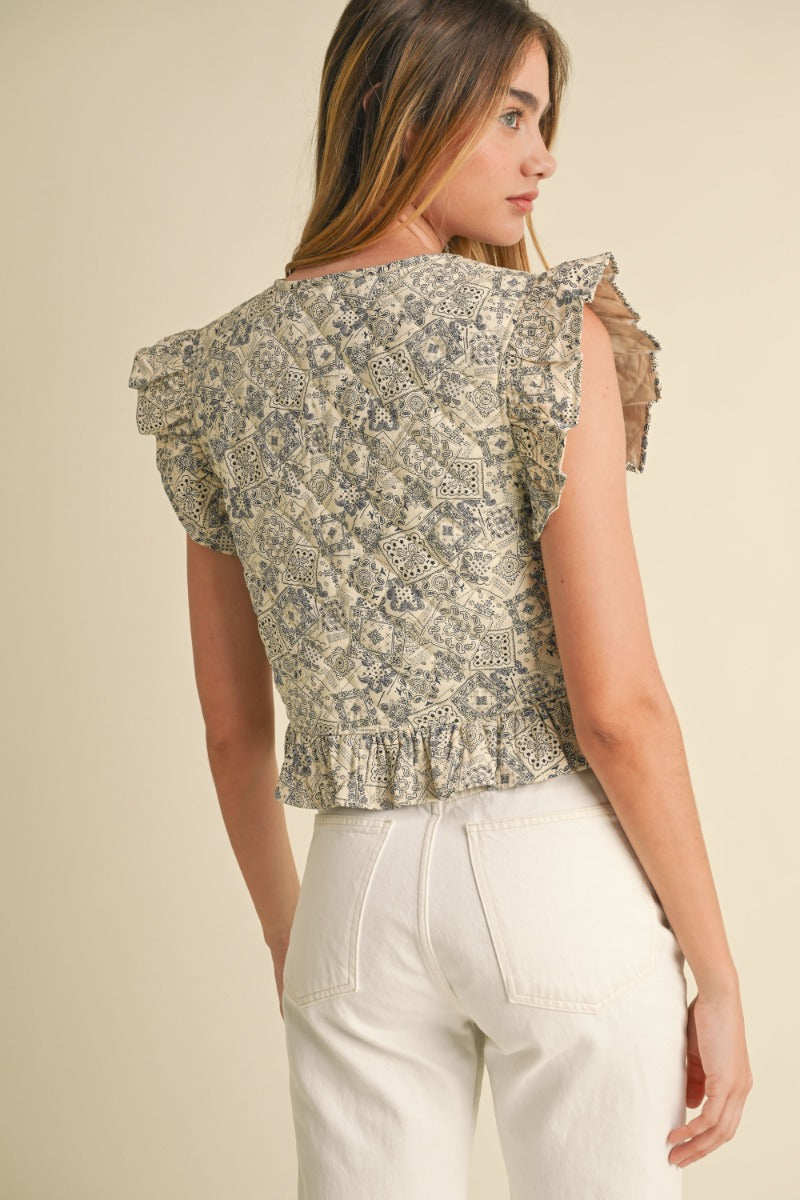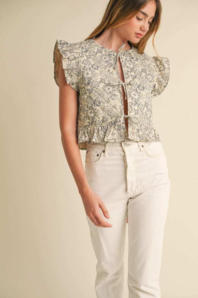 Chic and unique, this quilted patchwork vest jacket features stylish ruffle sleeves that add a feminine touch to its textured design. Perfect for layering, it’s a versatile piece that blends comfort with modern flair.