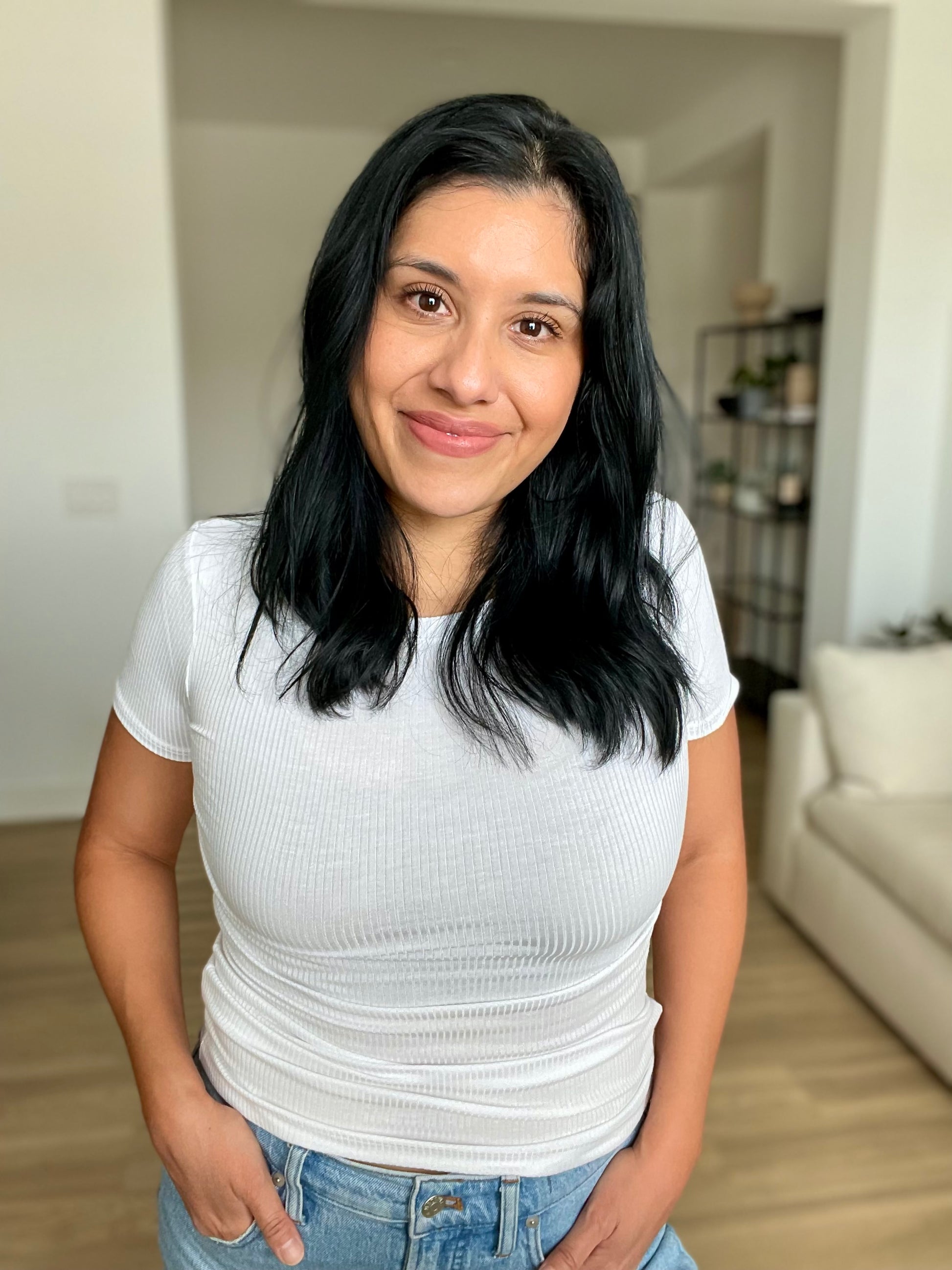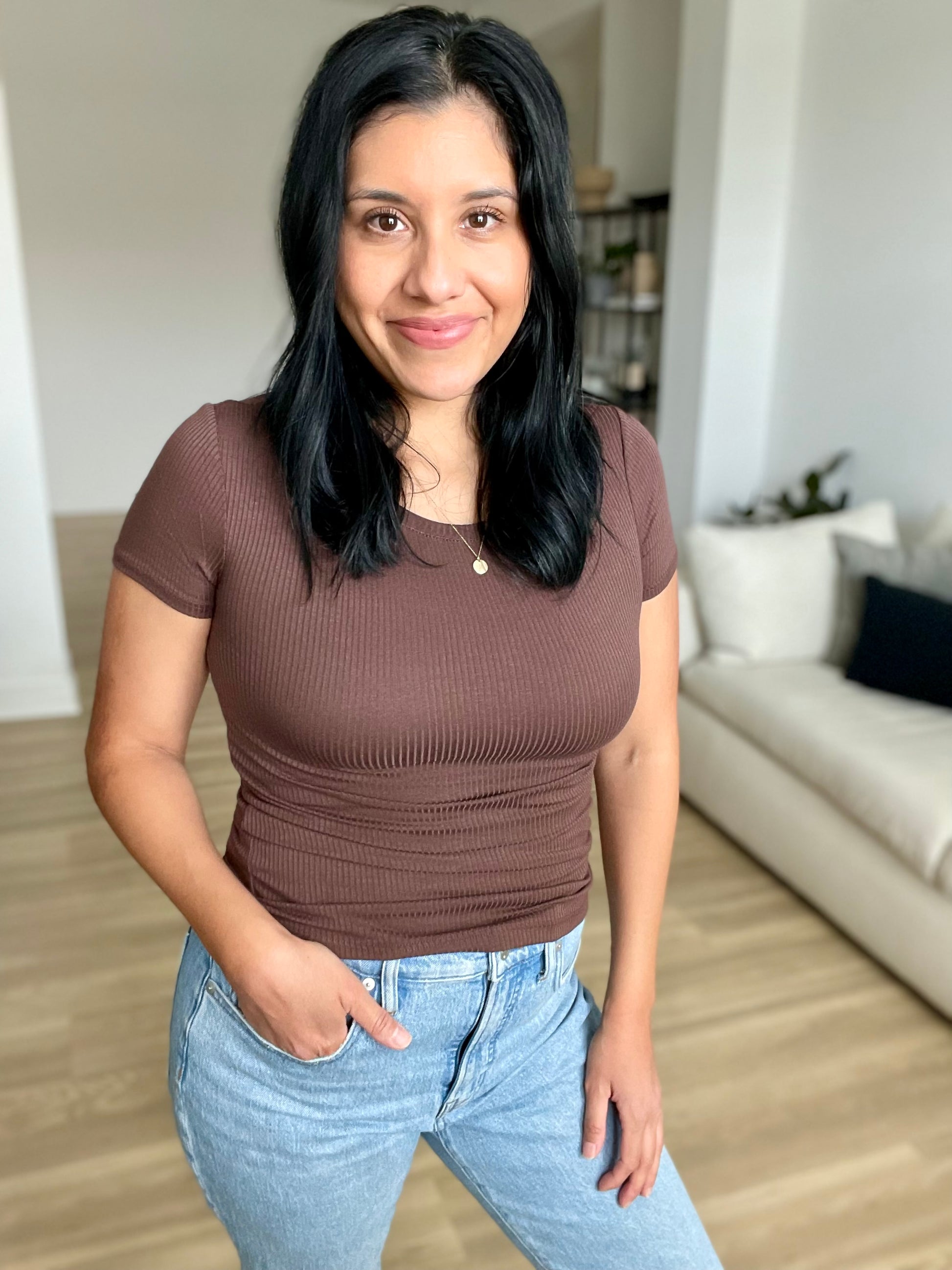 Incredibly soft midi-length basic scoop neck t-shirt that fits perfectly in all the right places.