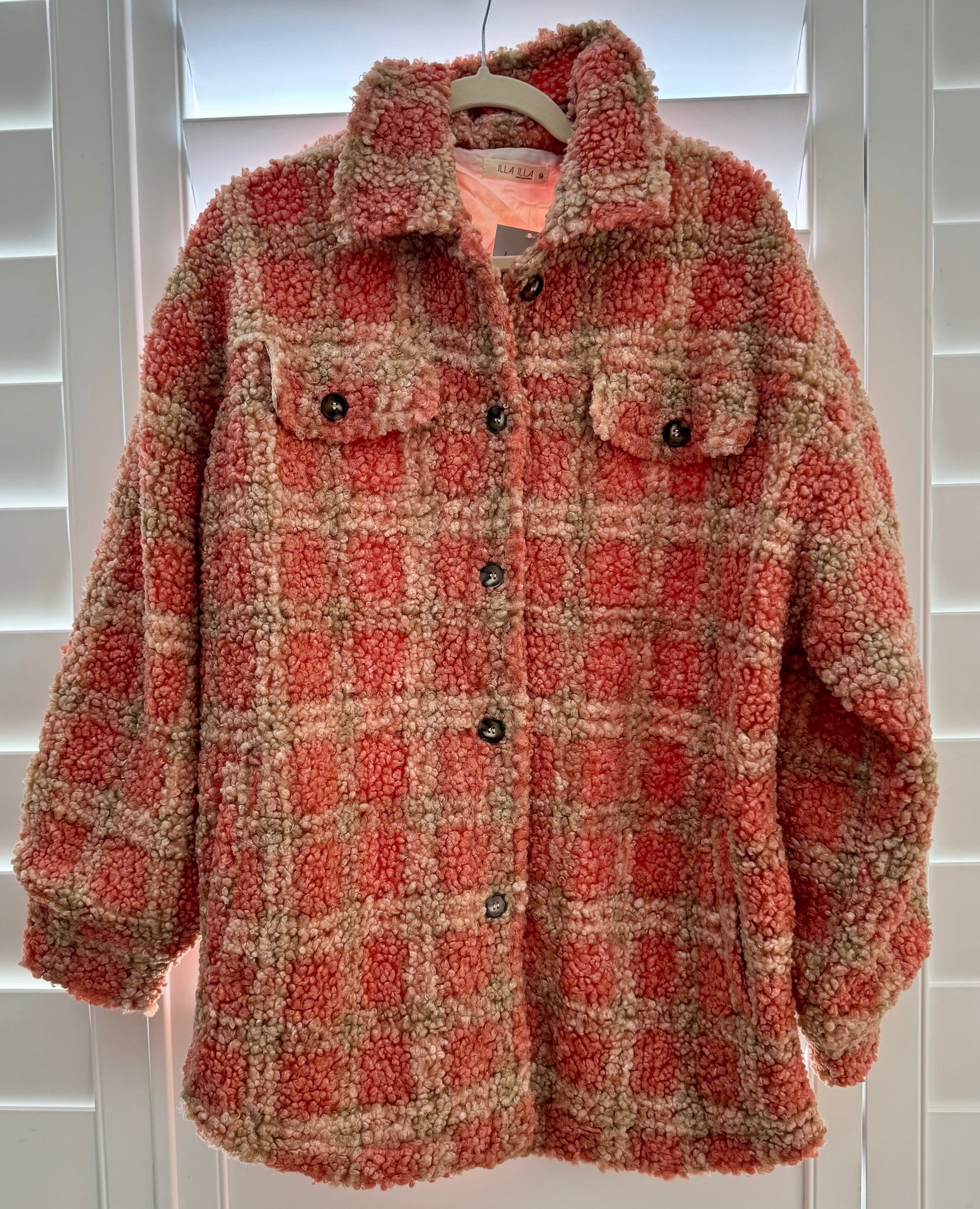 Cozy meets classic with this Teddy Plaid Shacket. Featuring a soft, textured fabric and timeless plaid pattern, this versatile layering piece is perfect for cooler days. Style it as a shirt or jacket for an effortlessly chic look.